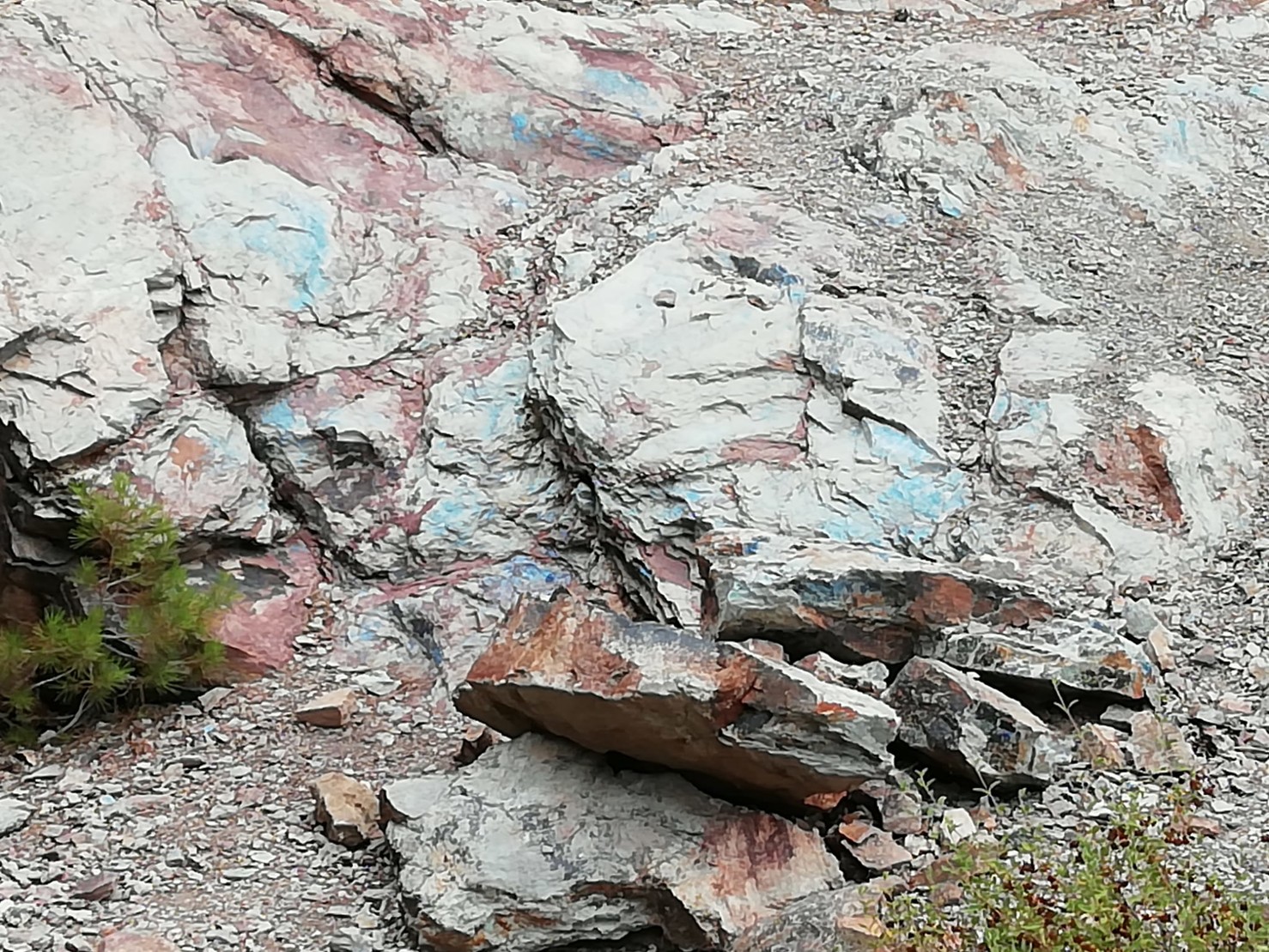Ese color azul se debe a que tiene azurita, o también malaquita azul, un mineral del grupo de los carbonatos de cobre, da ahí su colors azul. Visto en el Paratge Natural de Les Rodanes. #ecosistemas