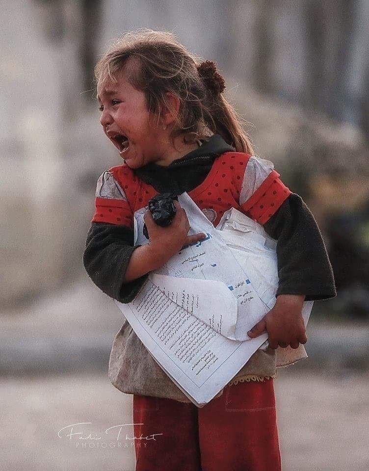 @numberzero Me gustaría saber a cuántos de los que ahora se manifiestan por la invasión de Ucrania, se les parte el alma al ver esta imagen, o compran productos israelíes. Es una niña palestina, de la línea de Gaza. En 2014, el ejército israelí bombardeo la Línea de Gaza y su casa fue derruida.