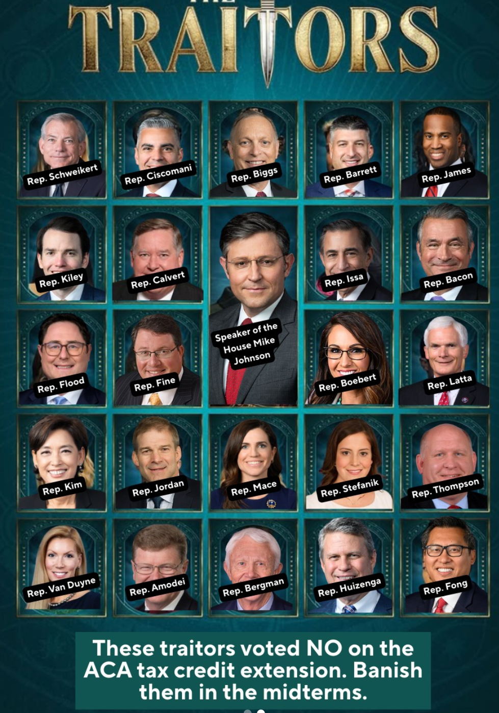 Is your representative a traitor who voted NO on the ACA tax credit extension.