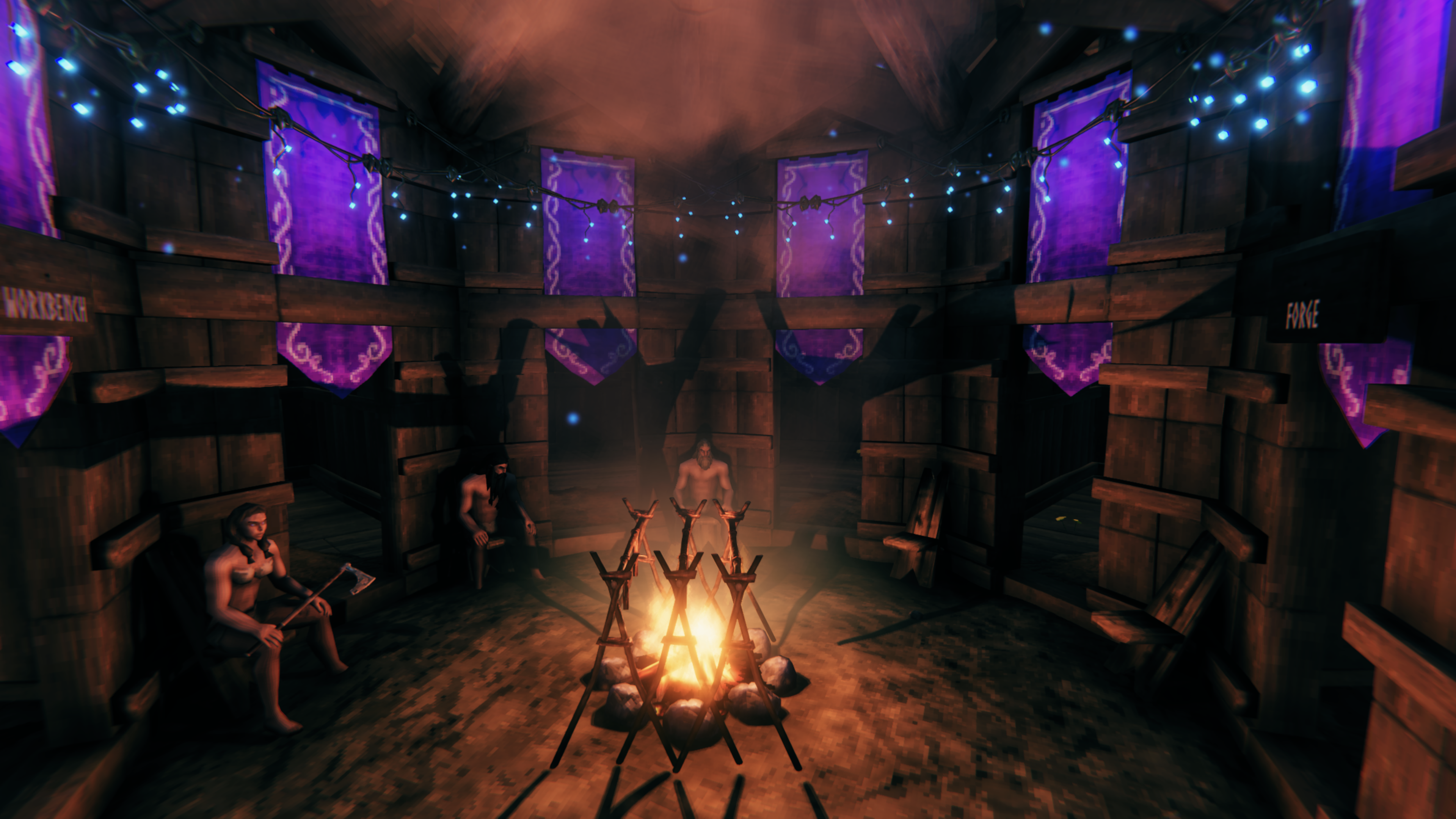 Today in #Valheim we all got naked and sat around in the sauna. Then Kat pulled an axe out!