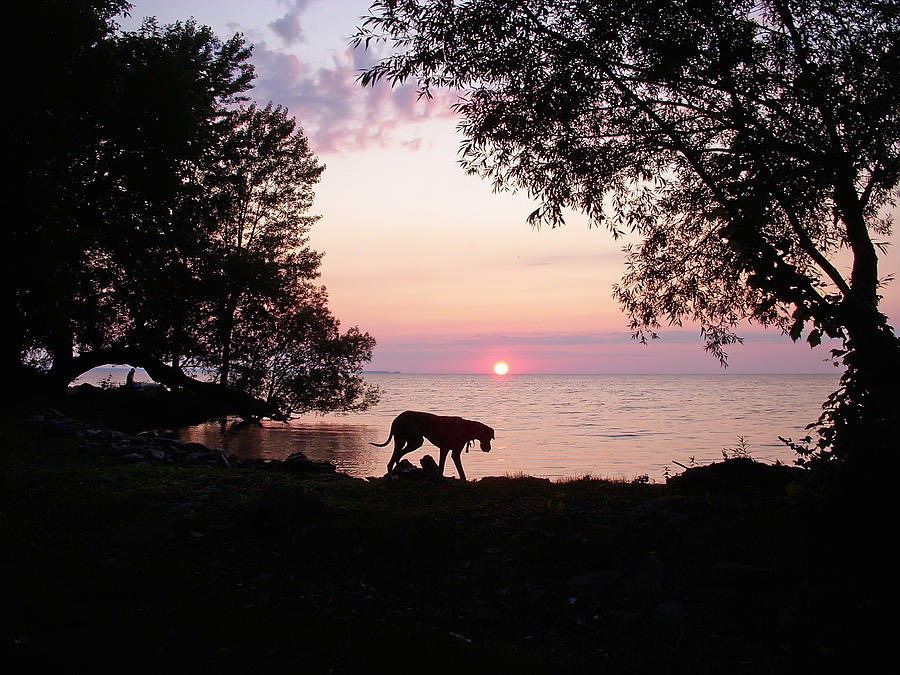 A great dane strolls on the shore of lake ontario at Association Island in Henderson New York. #ArtMatters #AYearForArt #dogs #greatdane #dogsofmastodon #sunset #nature Get it Here…https://fineartamerica.com/featured/great-dane-sunset-aimee-l-maher-photography-and-art.html