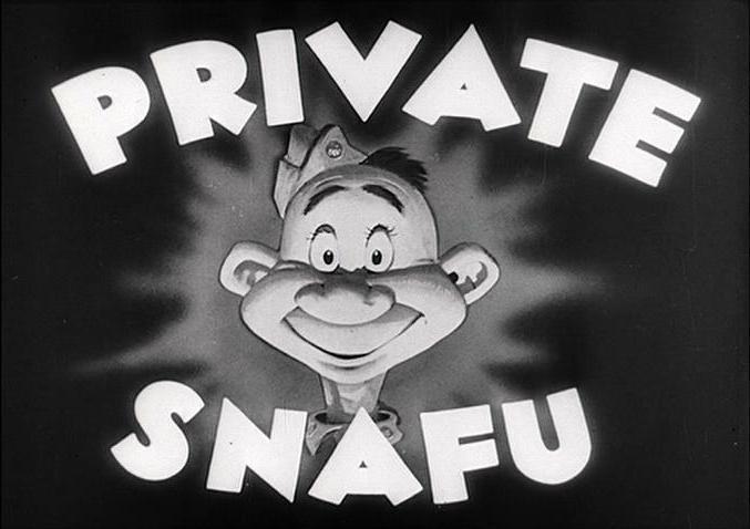 1943–5, with the help of Warner Bros.' finest, the U.S. Army produced a series of 27 propaganda cartoons depicting the calamitous adventures of Private Snafu. @Mark_D_Kaufman explores how one film inadvertently let slip one of the war's greatest secrets: publicdomainreview.org/essay/i