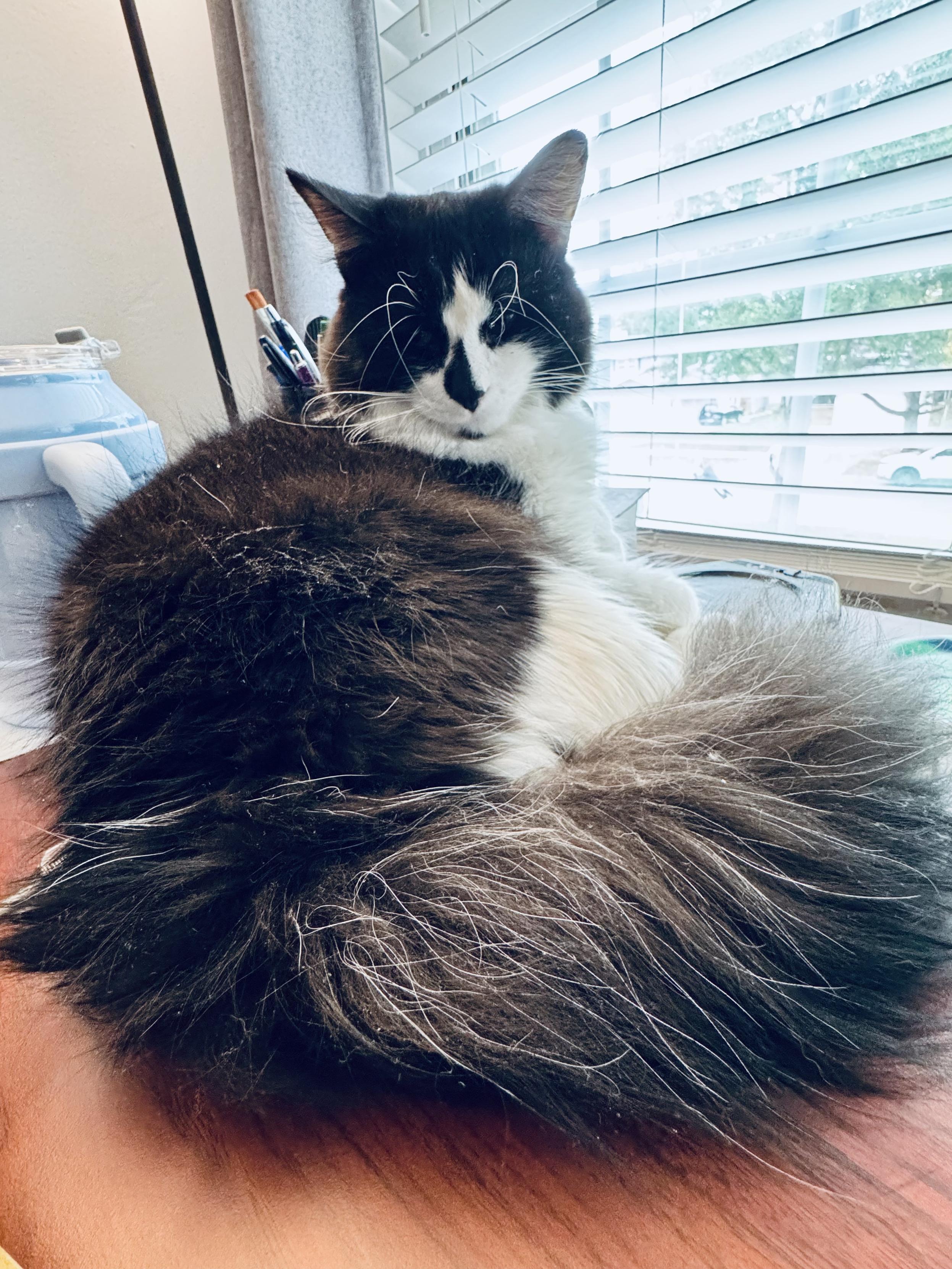It’s been a week and nobody has claimed him. Our dogs are learning to tolerate his existence in the house, and 3 years of shots seem to have 90% fixed my cat allergy. The cat redistribution system hath spoken.