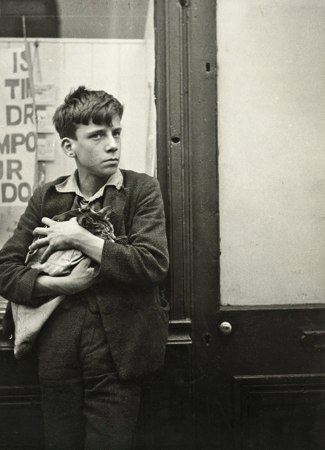 Boy with a Cat in his Arms Leaning Against a Shop Window, 1934