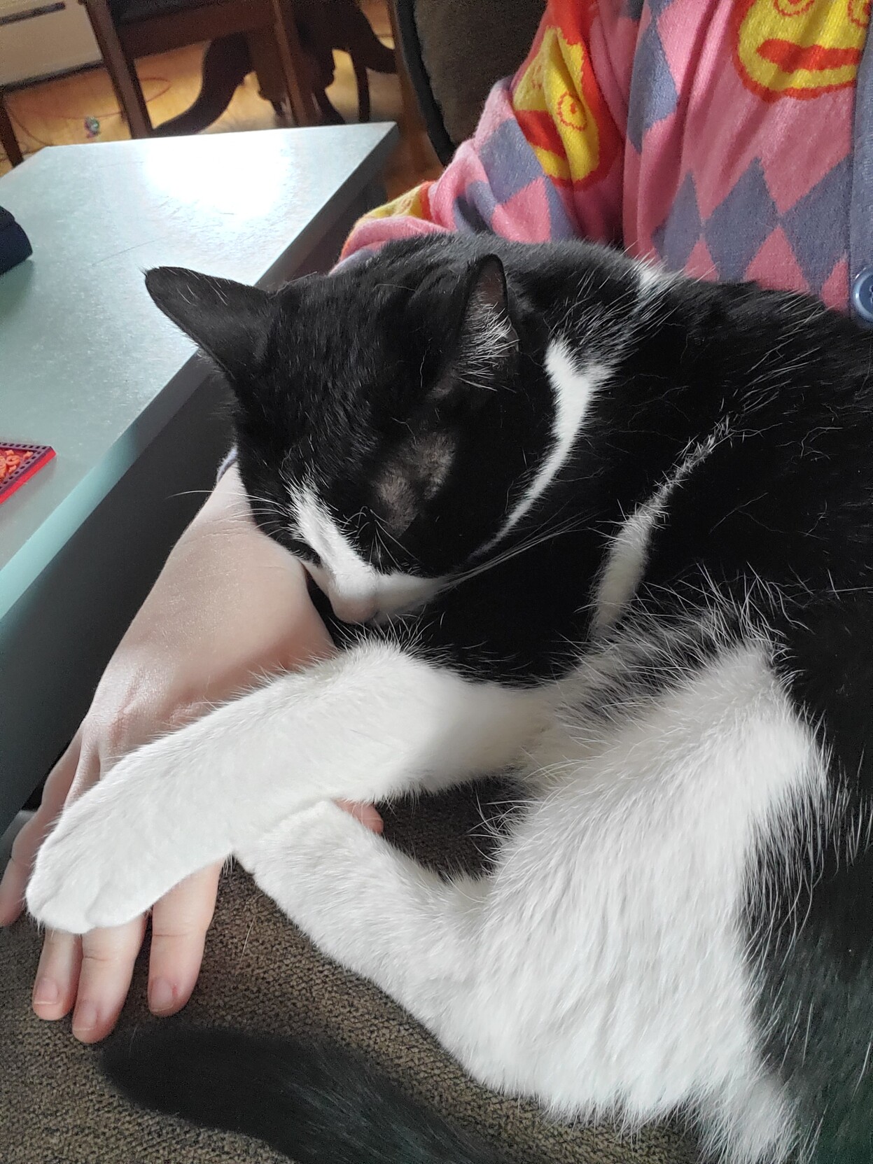 Spending their #Caturday afternoon by sitting around as a family and staring at a screen.
