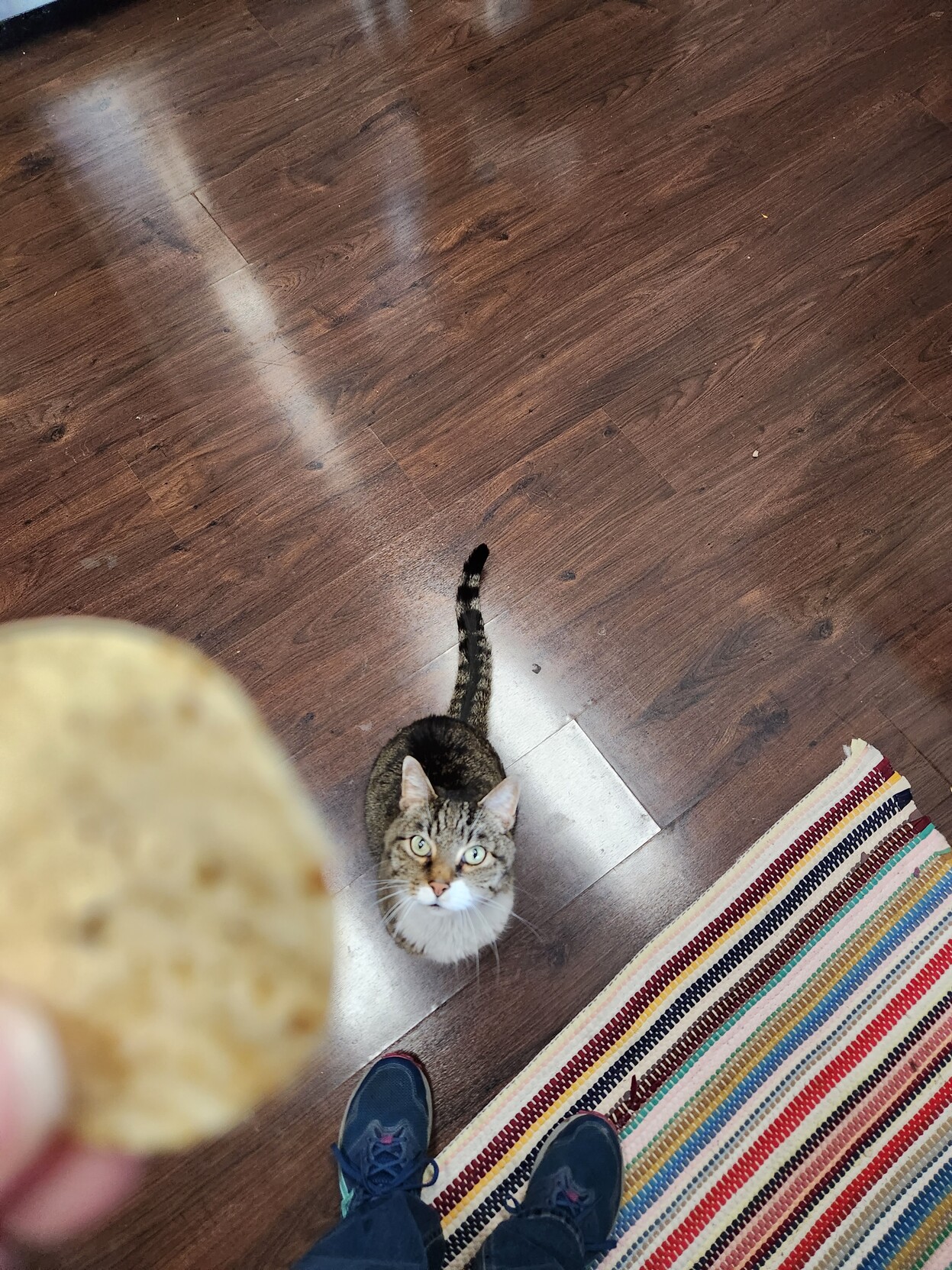 He heard me open a bag of tortilla chips. Yes, he sits like a dog for treats. He also knows how to wave and stand on two legs. I did not give him the chip.