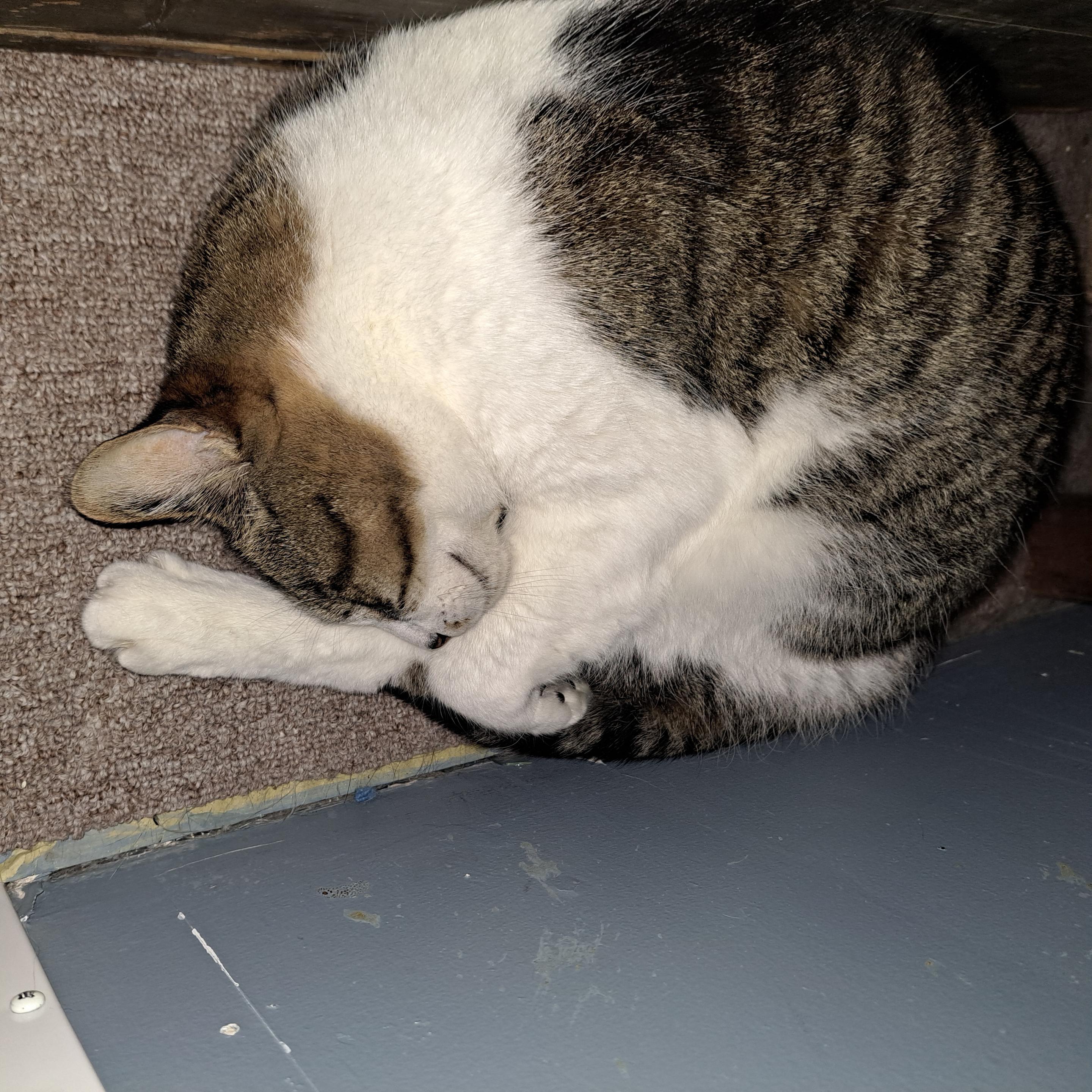Of all the cats around here, none appear nearly as happy when sleeping as the old man!