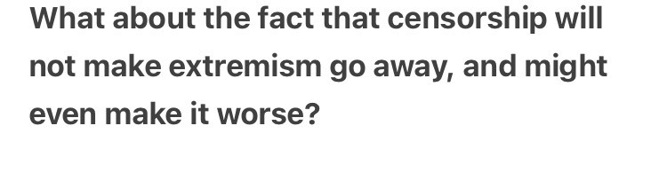 @kissane just that last couple of days I saw a couple of people advocating for no restrictions on speech, that all points of view are valid and need to be taken into account... Not if your view is that you want to kill a whole group of people.