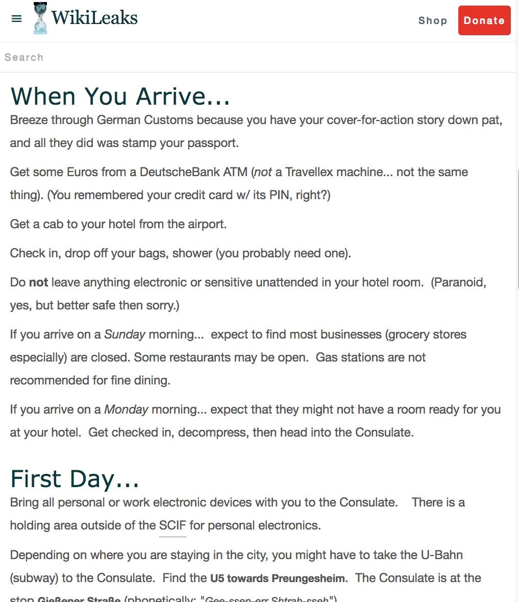 RT @wikileaks@twitter.com: CIA tips for its hackers going to the covert CIA hacking base hidden in the US consulate in Frankfurt #Vault7 https://wikileaks.org/ciav7p1/cms/page_26607630.html
