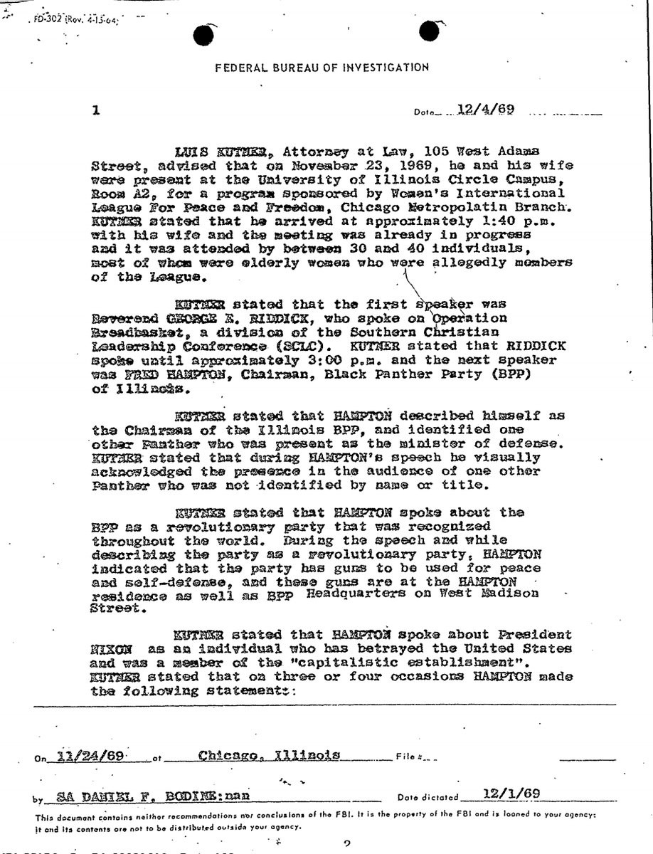 RT @OurHiddenHistry@twitter.com: This would appear to be an FBI document showing the co-founder of Amnesty International ratting Black Panther leader Fred Hampton out to the FBI. 🤔 #FOIA