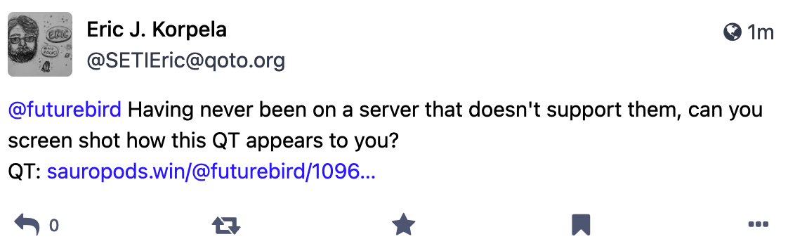 Can you do this again but QT a post that isn't from my home server, please? I'm curious if the link gets localized. (probably won't be)