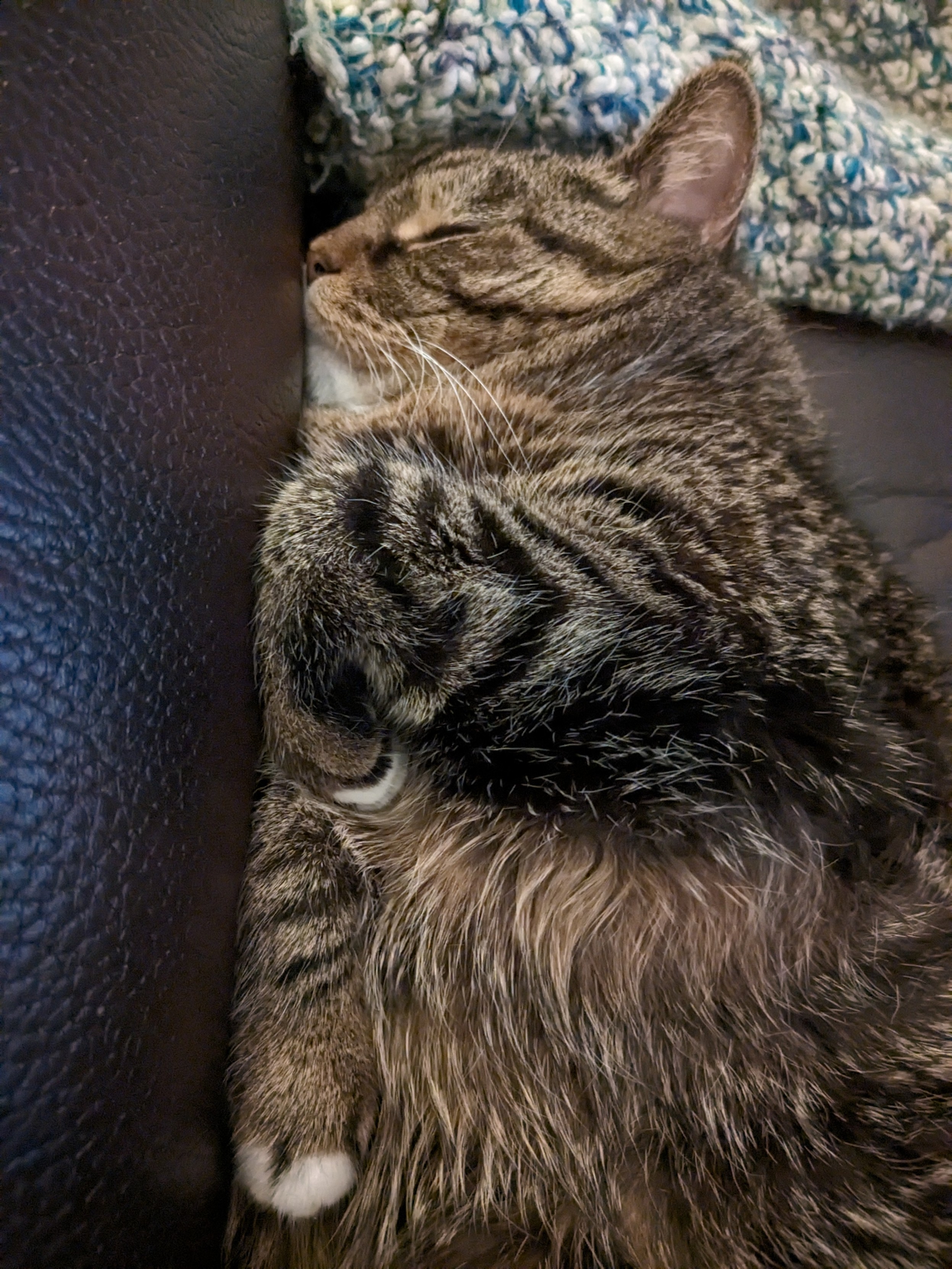 Pork Chop dosed right off listening to Vince Guaraldi 🎶 I think it was the soft brush work on the drums. #Caturday