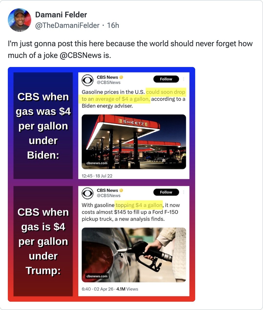@billyjoebowers a quick web search shows that gas prices are nearly two dollars per gallon less than they were four years ago.