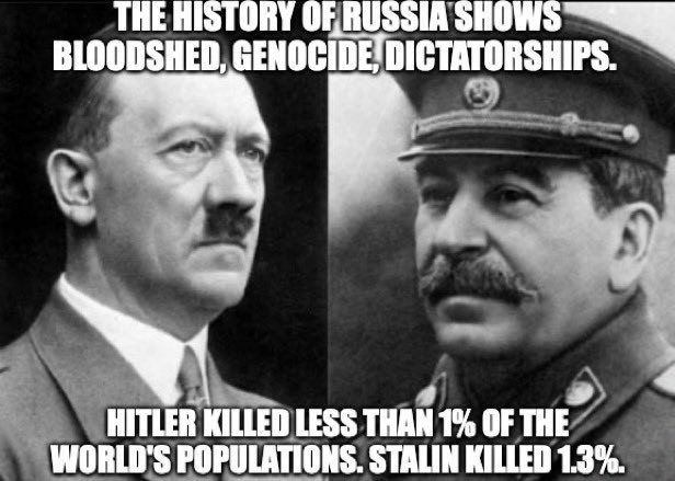 Most people don't know this. Most don't know about Holodomor. At harvest time in Ukraine Stalin sent troops to confiscate the entire crop, leaving Ukraine to starve.