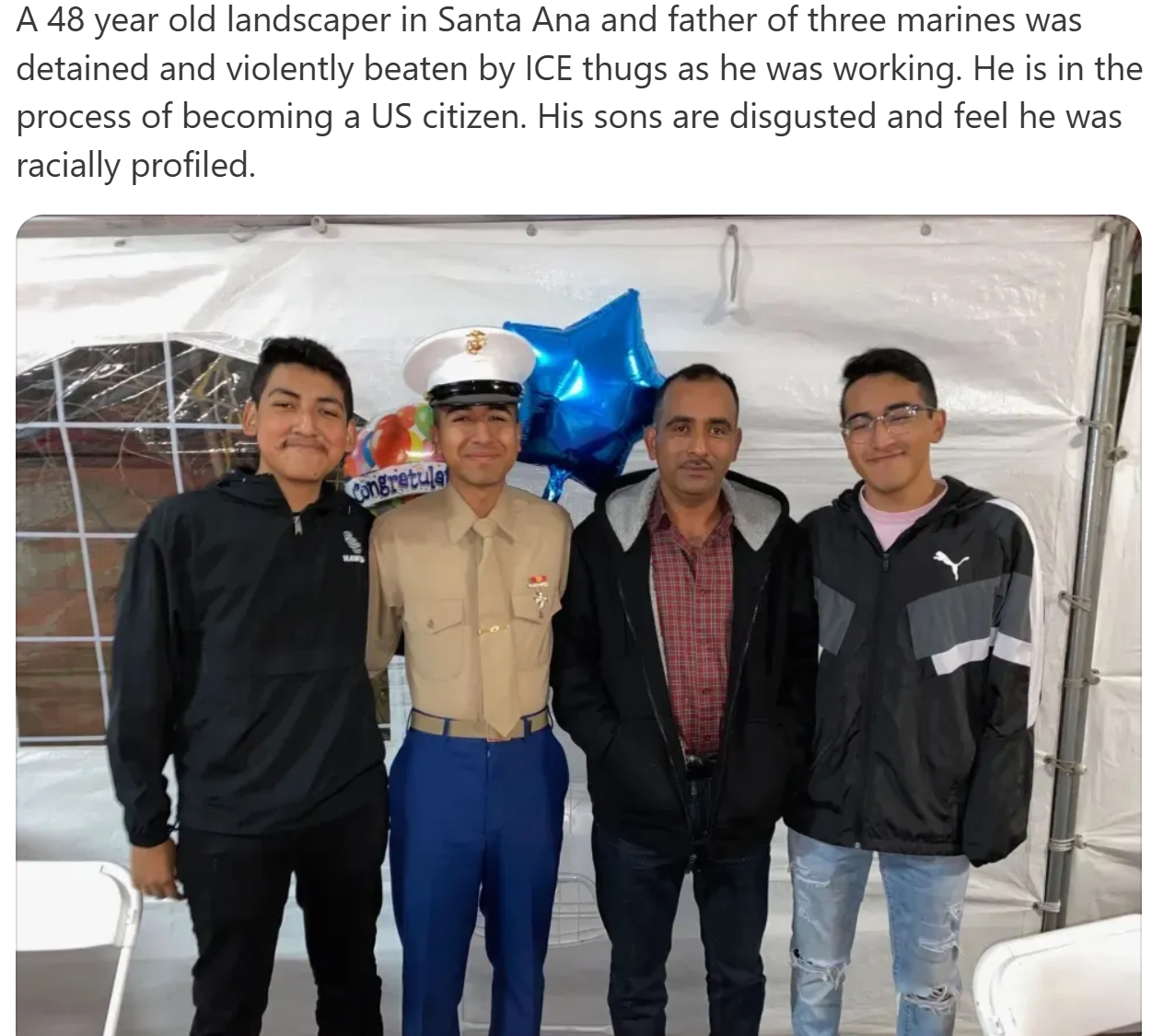 Seven or more masked men in Border Patrol uniforms are seen violently subduing and throwing a Santa Ana man into a vehicle. Family members identified the victim as Narciso Barranco, a father to three sons who are all U.S. Marines.