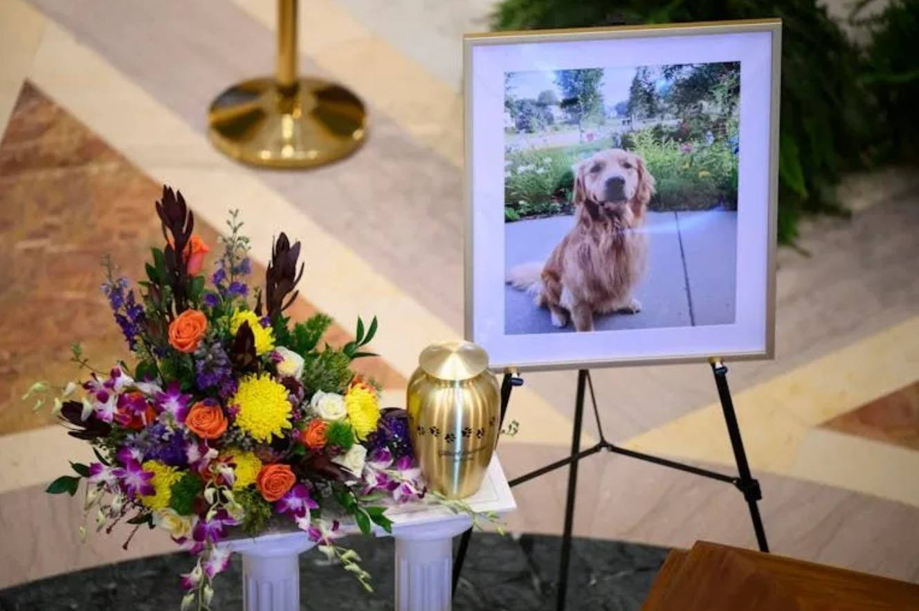 The Hortman’s dog, Gilbert, is not forgotten. And 20 or so service dogs, mostly golden retrievers, kept the vigil.