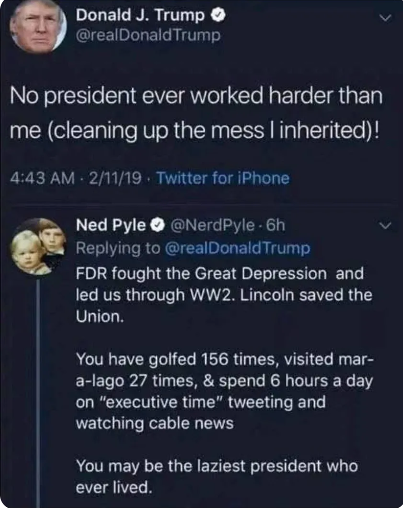 The only thing tRump has worked hard on is his golf game. And its still terrible.