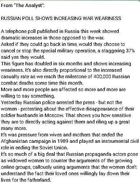 It may not look like it every day, but slowly and surely the sanctions are digging deep. We need to pile on the pressure. Not letting up. It DOES make a difference!