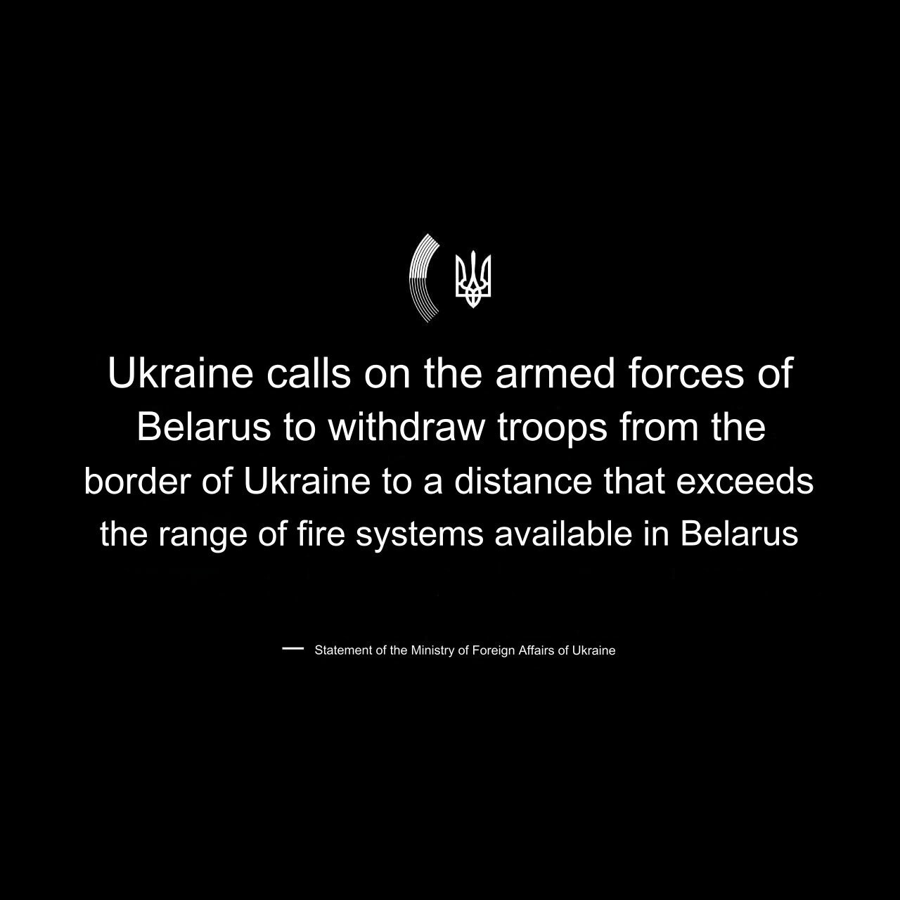 The Ministry of Foreign Affairs of Ukraine called on Belarus "not to make tragic mistakes for its own country under the pressure of Moscow" and withdraw its troops from the border with Ukraine to a distance that exceeds the range of fire systems available in the Armed Forces of Belarus.