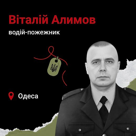 Vitaly Alimov worked as a firefighter driver in the Main Department of the State Emergency Service of the Odesa Region. He had the rank of master sergeant of the Civil Defense Service.