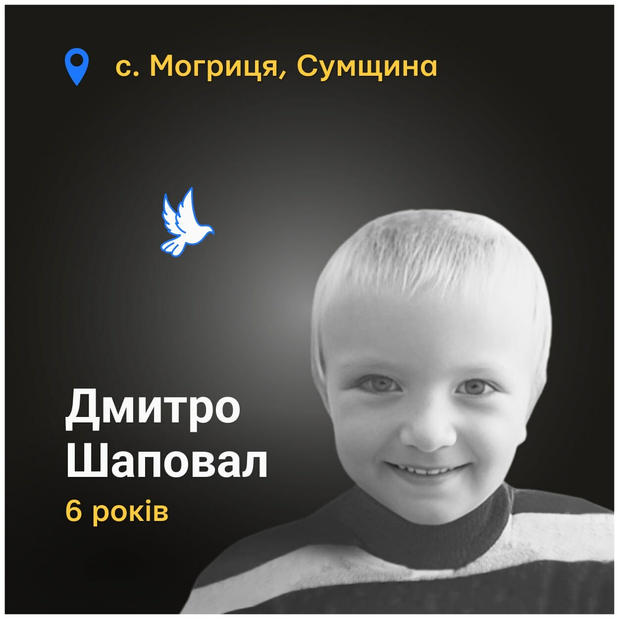 Dmytryk was six years old. He was born in the Sumy Oblast and grew up in the village of Mogrytsia. He studied in the first grade. He was a good, positive boy. Always smiled. He adored spending time with family and friends, playing various games.