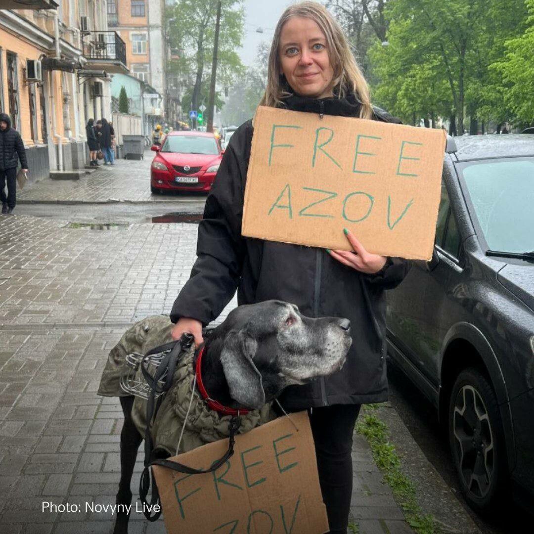 "Free Azov," says the plaque Kamilla wore to the rally, reminding us that the defenders of Mariupol remain in Russian captivity for almost two years.