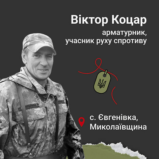 Viktor Kotsar, 58, lived in the village of Yevhenivka in the Mykolaiv region. He worked as a reinforcer.