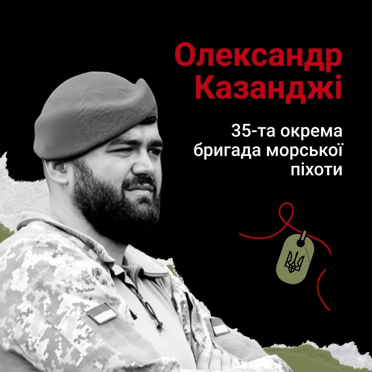 Senior Lieutenant Oleksandr Kazanji died on June 20, 2023 in Donetsk region. He was 32 years old.