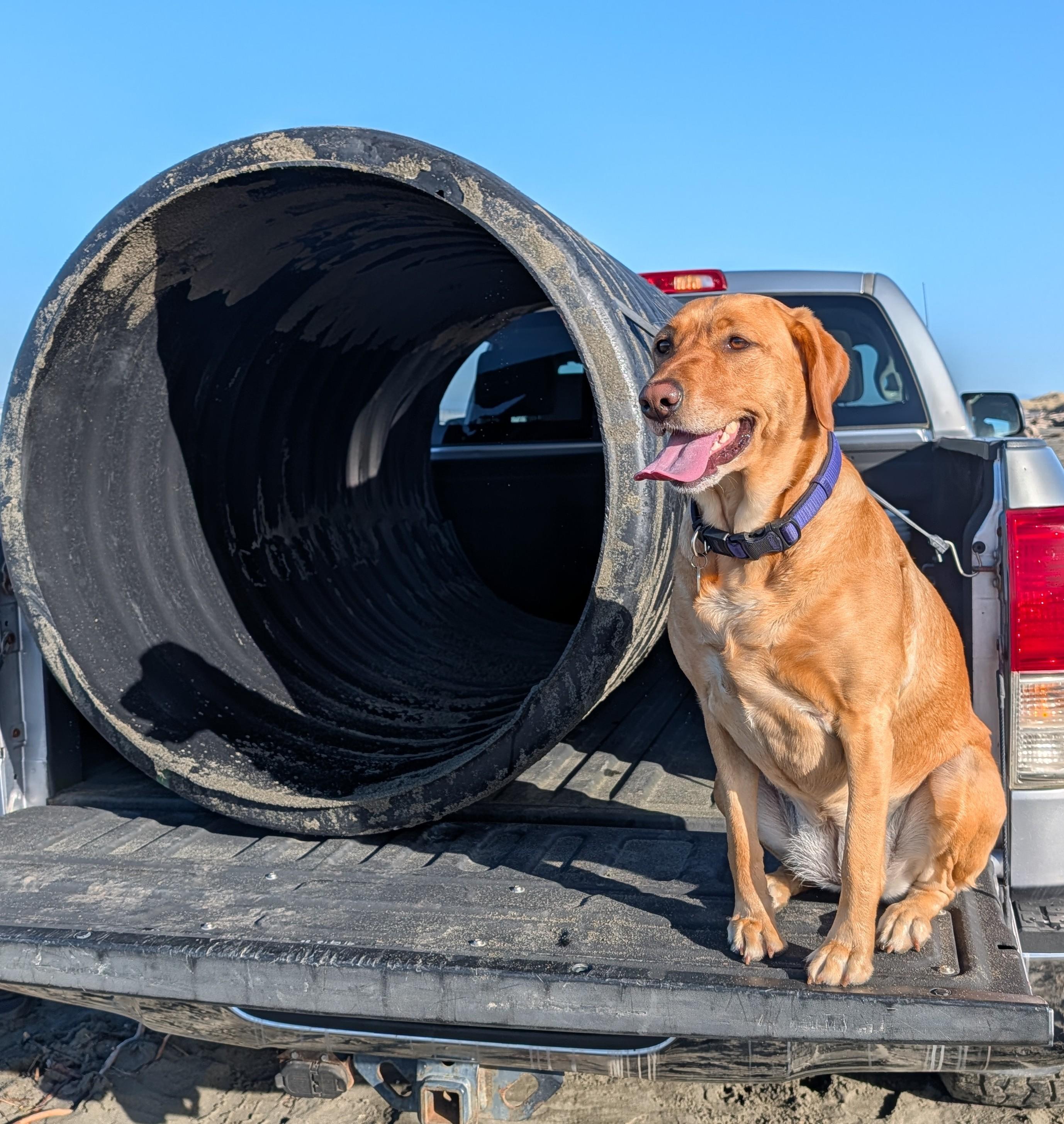 It was pretty easy to get down to the beach. I stood the pipe up and tipped it into the bed. Secured with bungee cords it wasn't going anywhere.