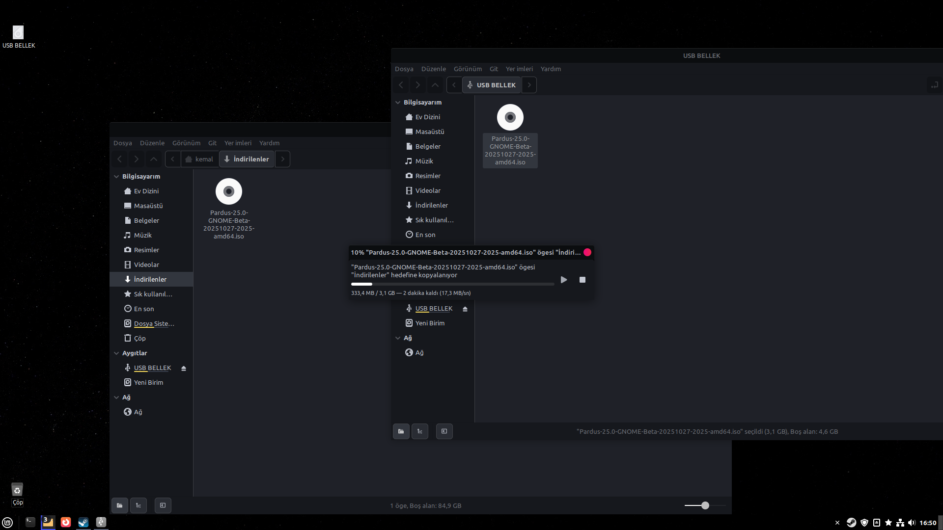 Pardus ISO'sunu flashlayacağım iki 32GB disk flash diski de belgeler, resimler, müzik ve videolar ile doldurdum!