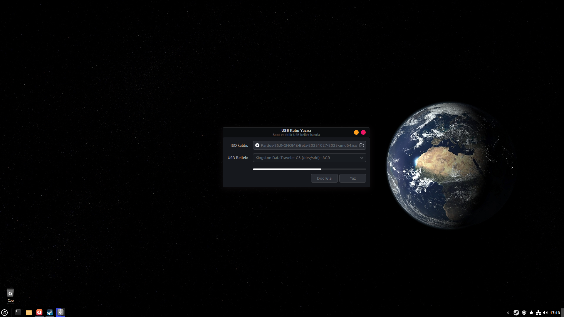 Pardus 25 ISO'yu Raspberry Pi OS'a indirmiştim. Oradan flash'a aktardım ve şimdi de LMDE 7'ye aktarıyorum.
