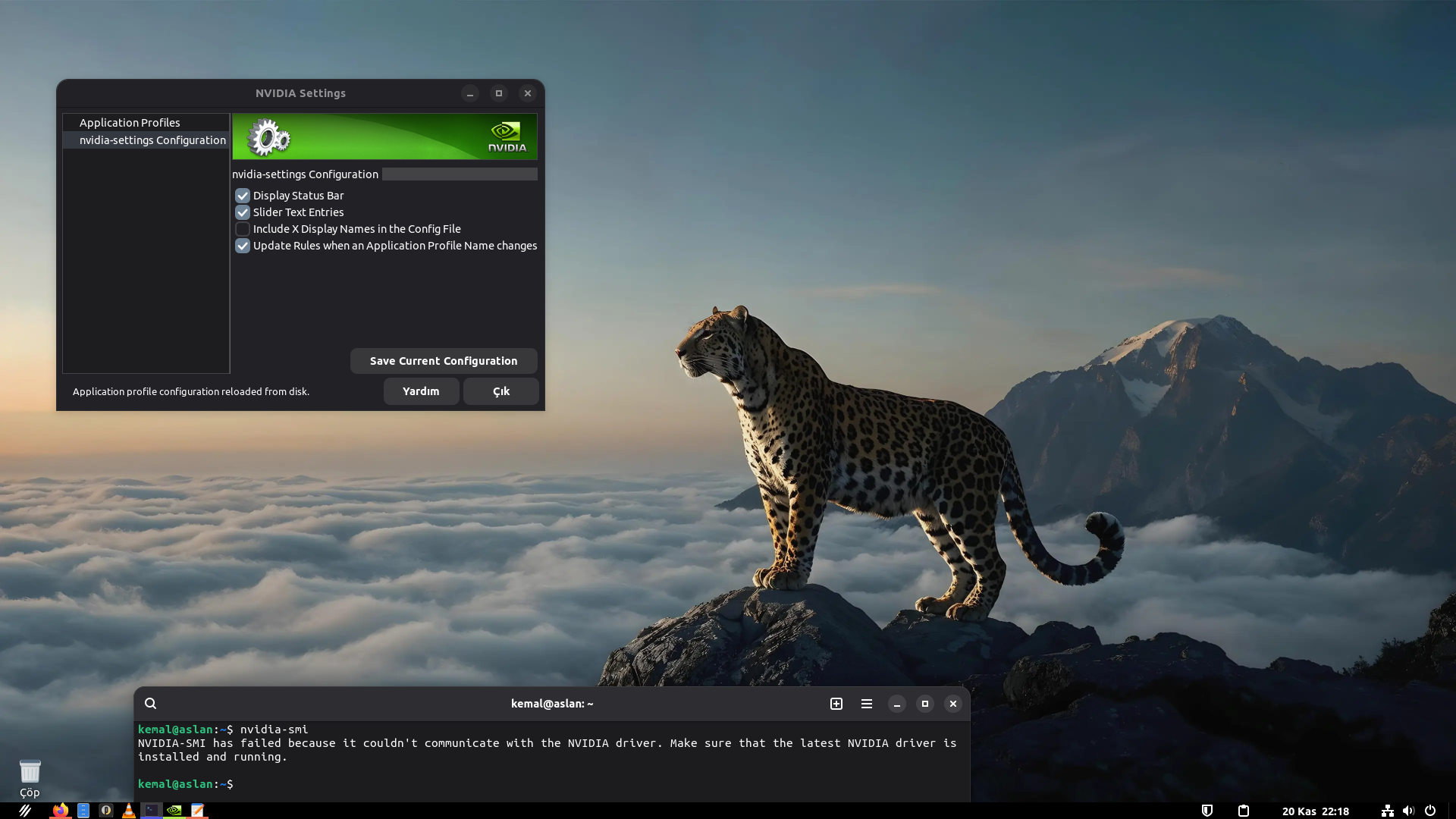 Nvidia Settings'i normal kurdum ve yeniden başlattım.