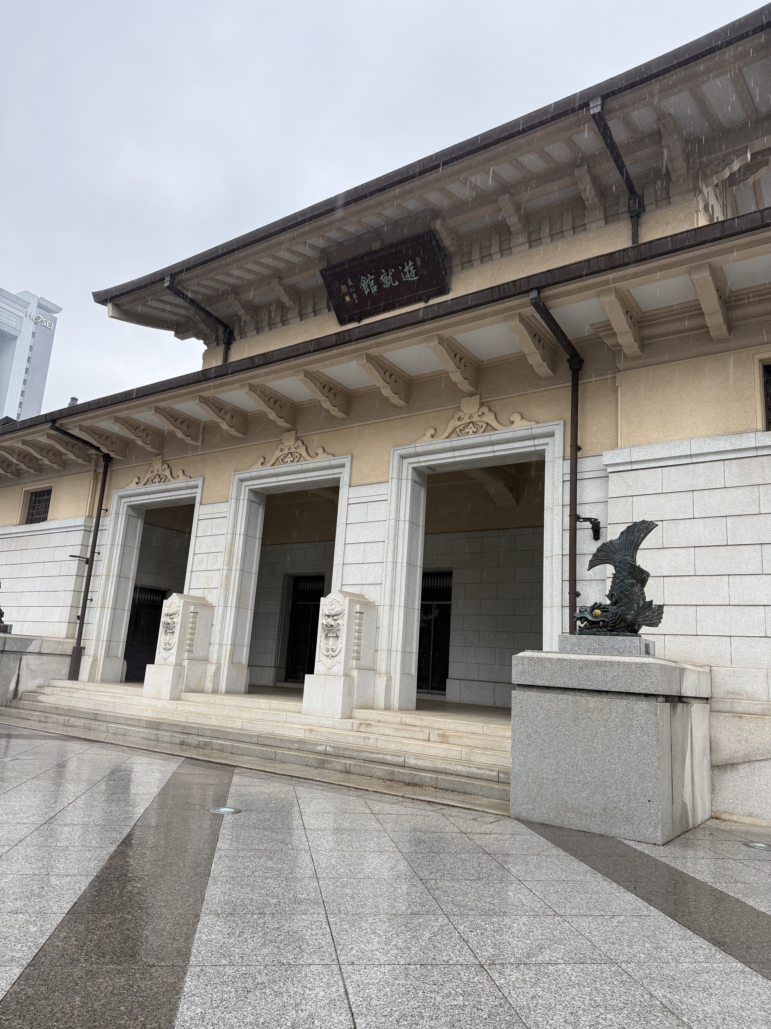 同志们,我带着批判地眼光冒雨去了游就馆,这玩意儿不允许拍照,所以网上也没有很详细的内容视频。我本来以为是个像俄亥俄或者佛罗里达那样的空军博物馆,或者至少咱们天朝的军事革命博物馆,最次也得像是大都会的盔甲武器区。结果这里面的展品基本特么只有一个主题:北白川能久在台湾被击毙的时候身边的东西,北白川永久在张家口被击毙的时候穿的衣服,山本五十六被美军击毙的时候的座机碎片,山口多闻在中途岛自沉的时候的遗书。所有各种遗书上那些皇国不灭、永为护国之魂、大日本帝国万岁什么什么,樱花回天特攻御芳名等等,他一概没有英语翻译。