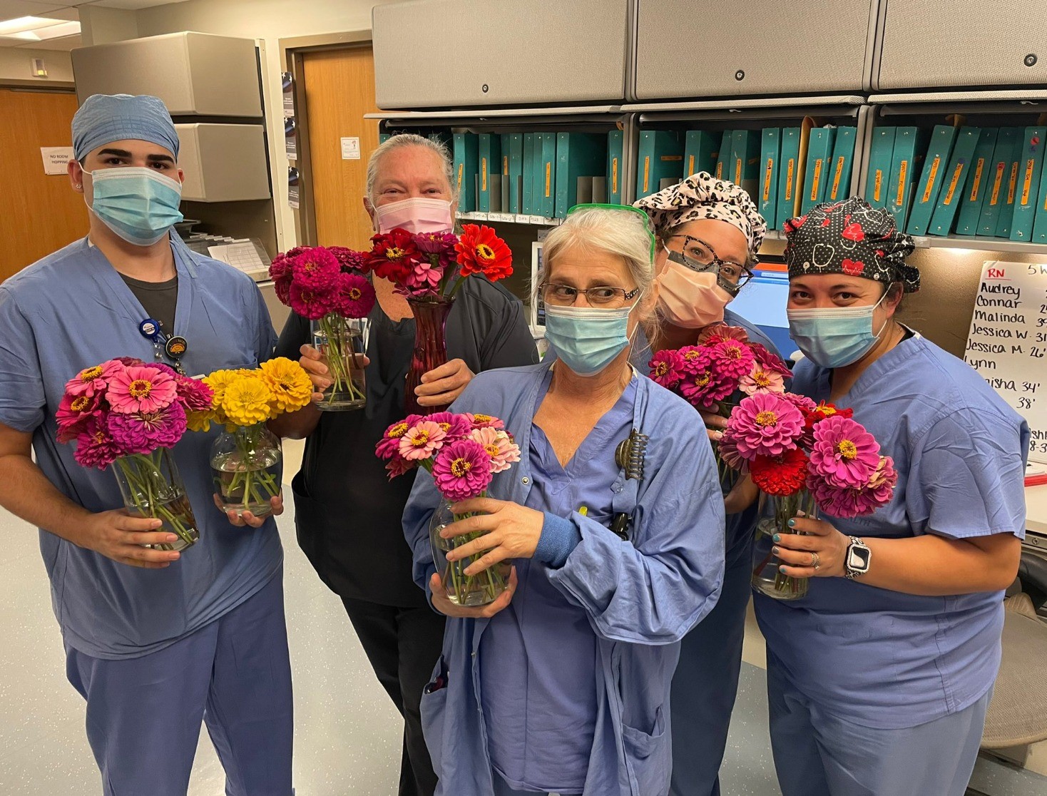 This was the height of the Pandemic in a Covid ward. And no, I was not there. But they loved the flowers and sent pictures.