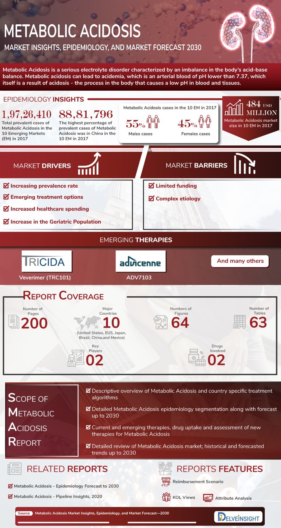 According to DelveInsight, the therapeutic market of Metabolic Acidosis in 10 emerging markets generated USD 484 Million in 2017 and is expected to change in the forecast period 2017–2030.