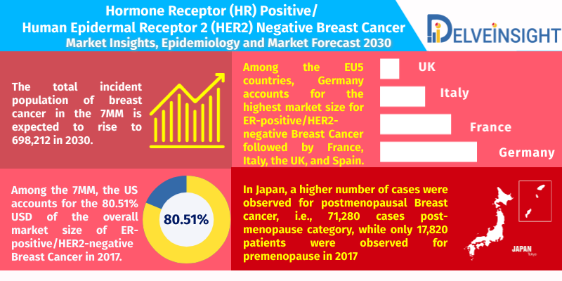 Among the EU5 countries, Germany accounts for the highest market size for ER-positive/HER2-negative Breast Cancer followed by France, Italy, the UK, and Spain.