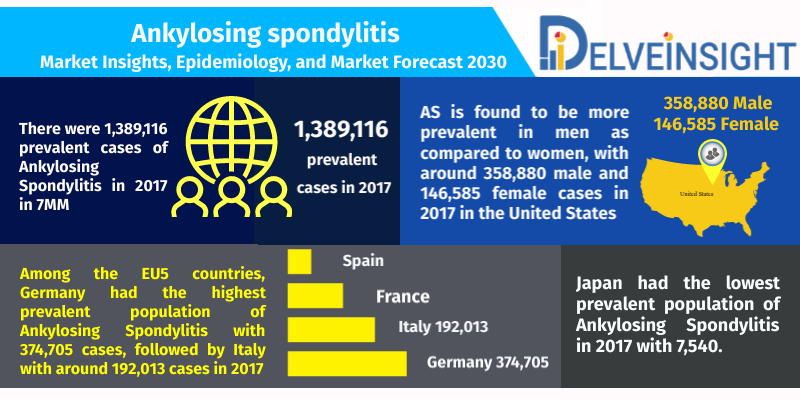 There were 1,389,116 prevalent cases of Ankylosing Spondylitis in 2017 in 7MM. These prevalent cases are further expected to increase for the study period 2017–2030.