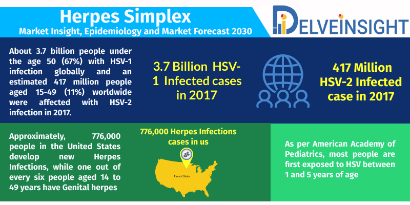 -As per WHO’s estimate in 2017, there were about 3.7 billion people under the age 50 (67%) with HSV-1 infection globally and an estimated 417 million people aged 15-49 (11%) worldwide were affected with HSV-2 infection.