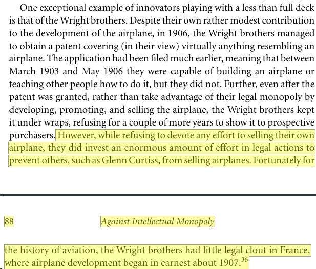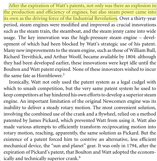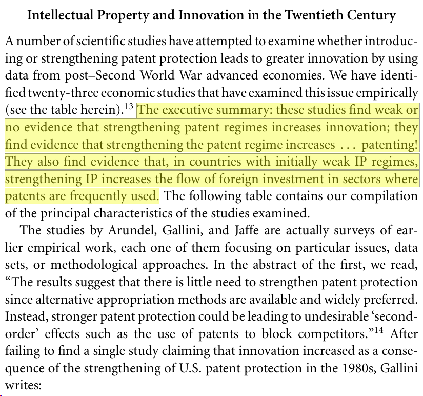 P. 192: el fortalecimiento de la protección de patentes en el siglo XX no condujo mayor innovación sino mayor patentación para bloquear a la competencia.