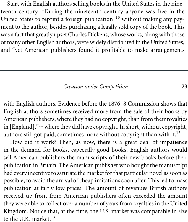 La distribución de libros de Reino Unido a Estados Unidos donde no tenían derechos de autor no solo generaba ingresos a los autores, a veces hasta más que su país donde si tenían derechos de autor.