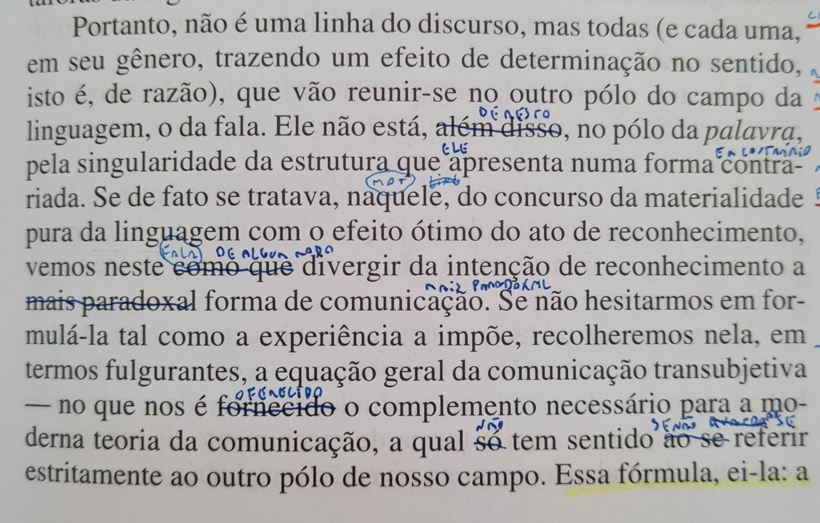 Há tempos leio Lacan fichando. E ao mesmo tempo, achando bastante desnecessário o estilo do dito cujo. Há estilos e estilos, e muitos deles exigem uma espécie de engajamento no qual o leitor supostamente se comprometa (no caso, comprometa-se como sujeito) no que lerá. É o que parece querer de seu leitor. No que também vale dizer: há aqueles que, para levar o indicador à orelha, escolhem dar a volta com o braço pelo outro lado da cabeça 🤡