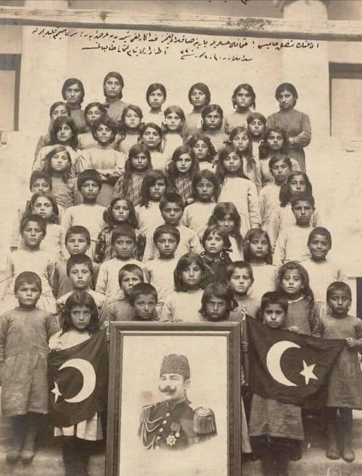 Bu karede gördüğümüz çocuklar, aslında tarihin en acı sayfalarından birinin tanıklarıdır. Onların masum bakışlarının ardında, anneleri ve babaları soykırımda öldürülmüş olmanın tarifsiz hüznü saklıdır. Geriye kalan bu yetimlerin önüne bir katilin portresi konulmuş, ellerine Osmanlı bayrağı tutuşturulmuş ve kameraya “itaatkar tebaanın” temsili olarak sunulmuşlardır.