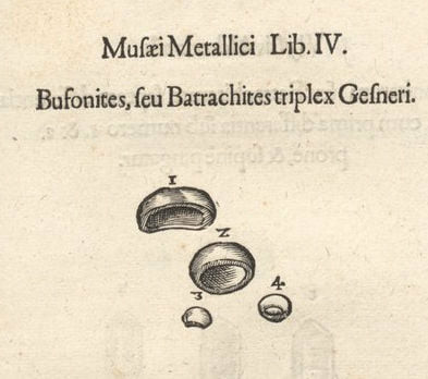 Toadstones or Bufonites are gemstones growing in the head of a living toad. The stone must be recovered by putting the toad on a red blanket or by exposing the animal to heat - the animal will then spit out the stone.
