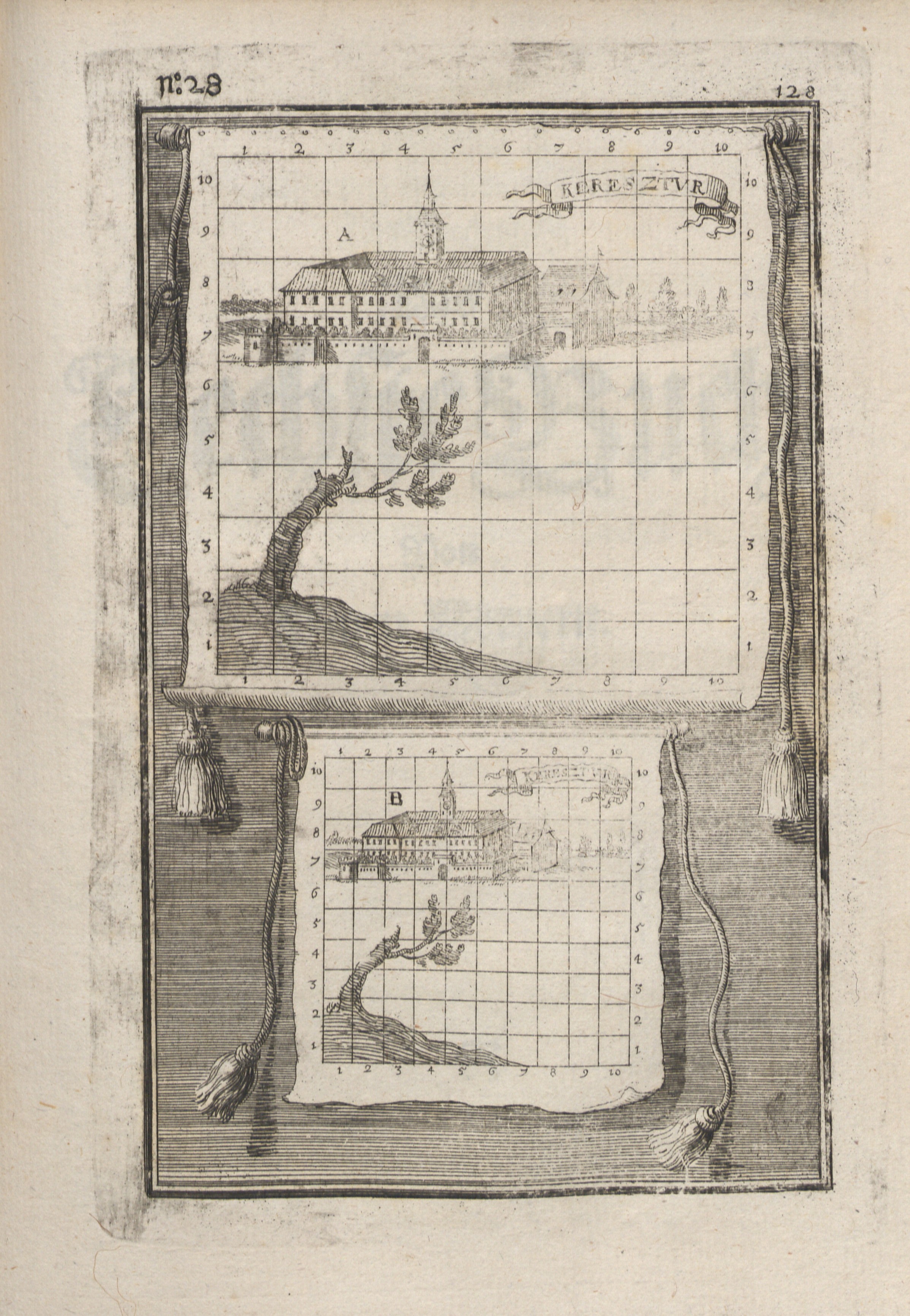How to draw to scale in 1698 Germany? You see a page from a book that teaches, among other "Feldmesserey" stuff, the art of reducing or enlarging an image accurately in size. #bookhistory #maths #histodons