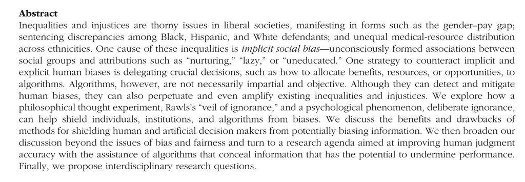Hertwig et al argue combining Rawls’ Veil of ignorance with deliberate ignorance can help shield individuals, institutions, and algorithms from biases: