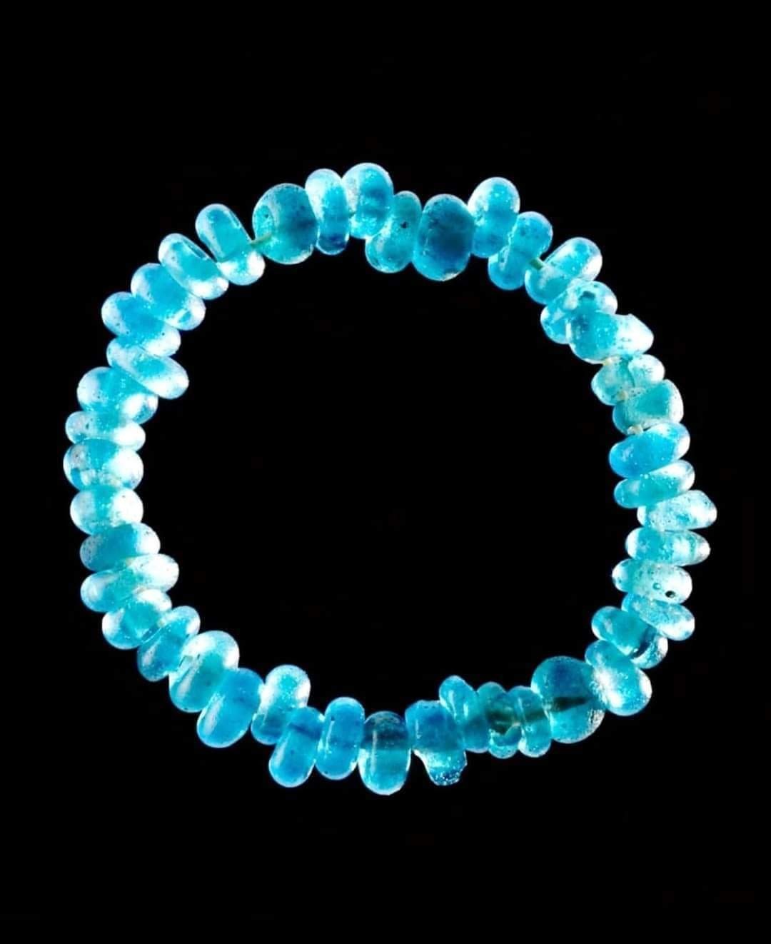 Blue Glass Beads; from late Bronze Age (3300-1200 BC). Found in 1885 when a farmer ploughed up a cremation urn at Kongehøj in Denmark.