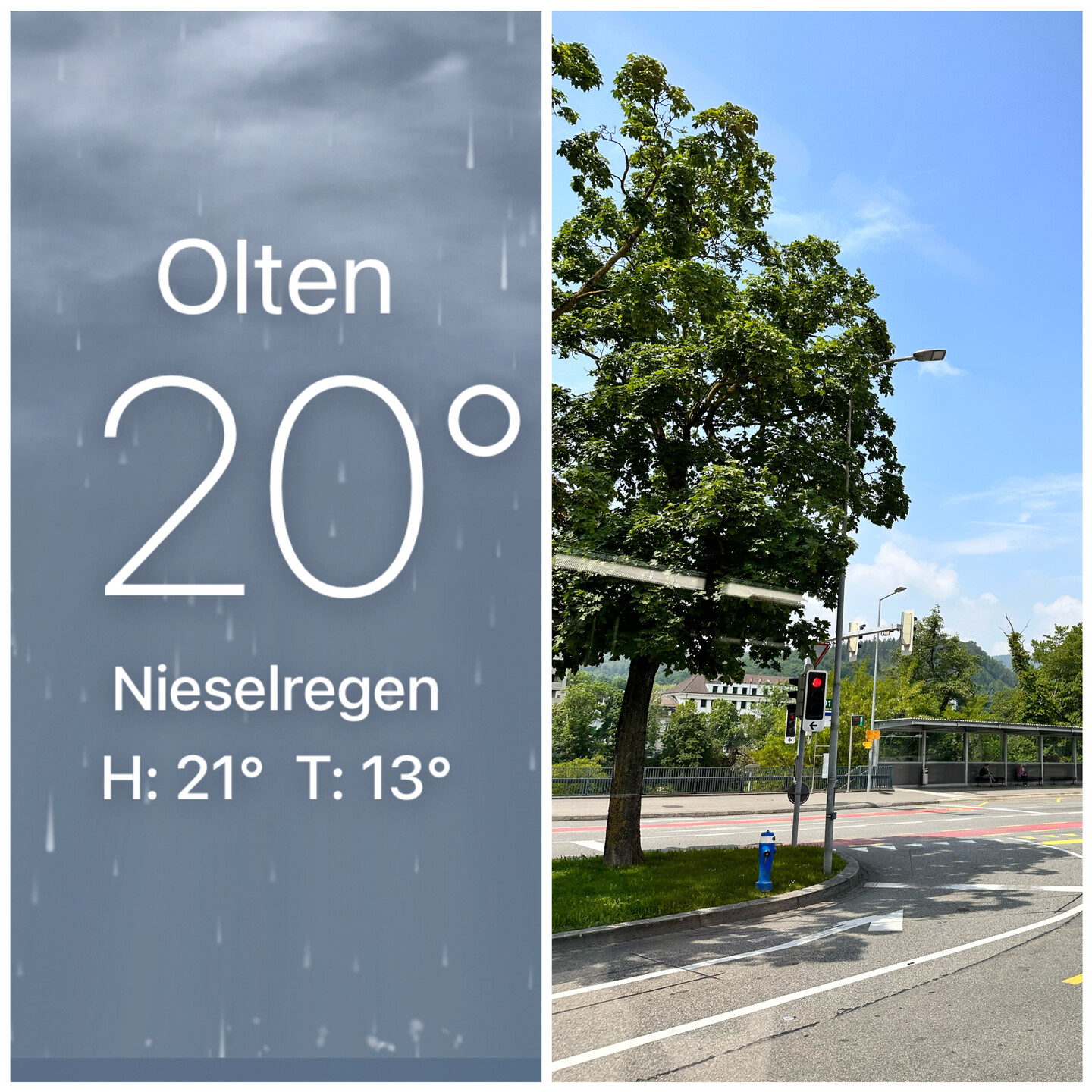 @didib links aktuelles Wetter in Olten, rechts ein KI generiertes Bild? #duckundweg