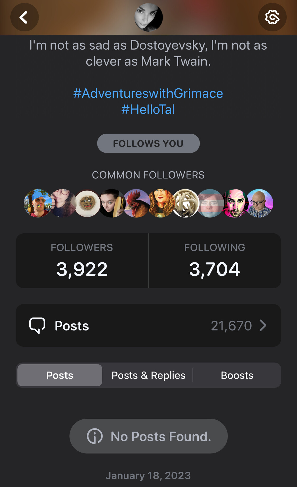 One thing I just noticed is that both are on mstdn.social, so I’m wondering if that has anything to do with it?
