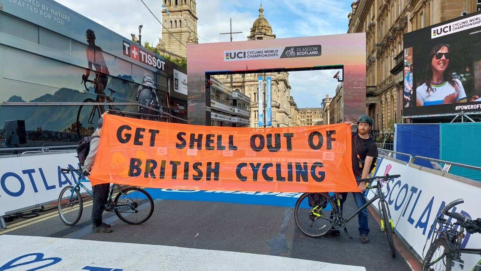 XR Glasgow highlighted its disgust at the ongoing relationship between oil giant Shell and British Cycling, the UK’s main governing body of cycle sport.