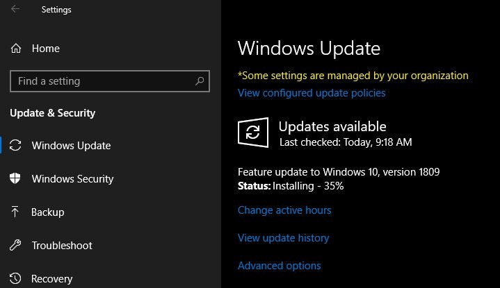 RT @SCCM_Dude@twitter.com: Here goes nothin! Upgrading #Windows10 from 1803 to 1809 on main workstation. #HappyWednesday!